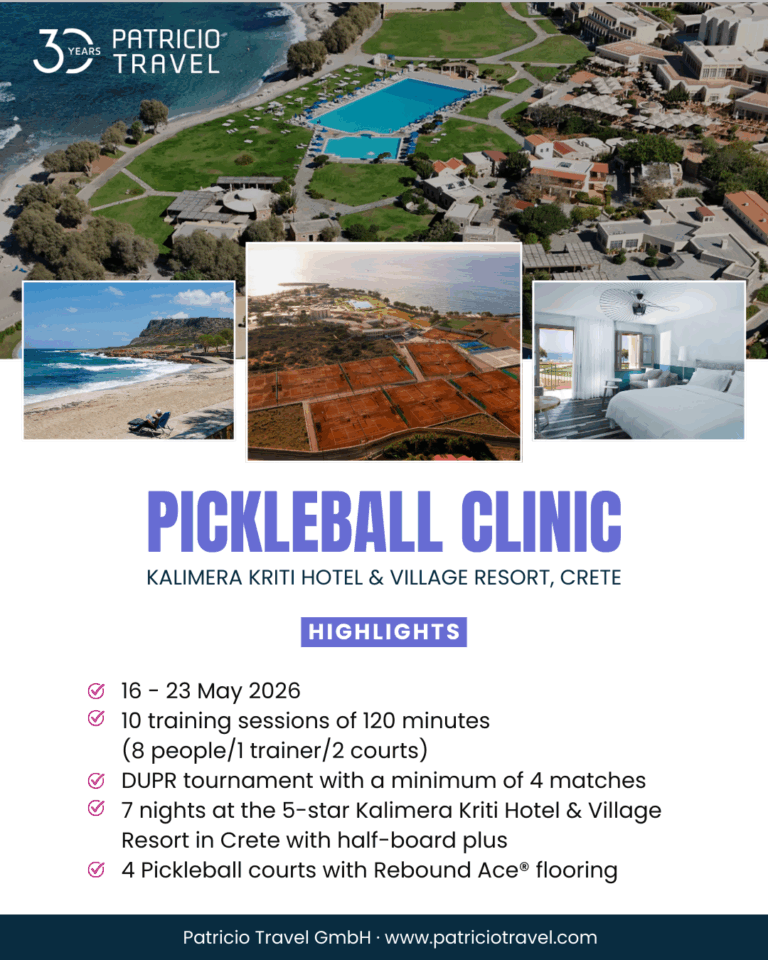 After a successful premiere last year, the ITF tournament on the beautiful island of Crete is entering its second edition – a true highlight for all tennis fans! The event will take place at the exclusive Kalimera Kriti Hotel & Village Resort, which offers the perfect combination of tennis, padel, fitness, and relaxation, making it an ideal location. The brand-new tennis facility, featuring 20 “real” clay courts, is perfectly suited for ITF tournaments and provides players with top-class conditions for exciting matches.